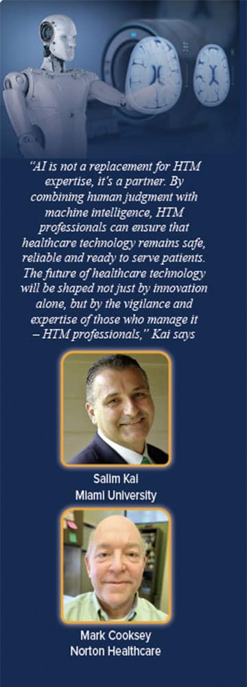 “Artificial intelligence is everywhere in healthcare conversations. For healthcare technology management professionals, it’s not about robots replacing engineers or technicians, it’s about using smarter tools to enhance patient safety and operational efficiency. Think of AI as a second set of eyes: from predicting when a ventilator or CT scanner might fail, to streamlining workflows across departments,” says Salim Kai, MS, CHTM, CBET, visiting faculty, Miami University-Teaching in Clinical Engineering and Hospital Instrumentation.
