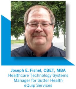 Joseph E. Fishel CBET, MBA is the Healthcare Technology Systems Manager for Sutter Health eQuip Services.