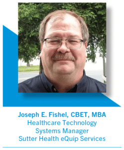 Joseph E. Fishel, CBET, MBA, is a Healthcare Technology Systems Manager for Sutter Health eQuip Services.