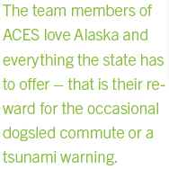 The team members of ACES love Alaska and everything the state has to offer – that is their reward for the occasional dogsled commute or a tsunami warning.