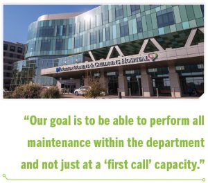 The system’s clinical engineering department handles the equipment at these sites by relying on more than 40 team members. The department includes technicians, specialists, administrative support, management, and an executive. Several members of the group are CBETs and one person is a CHTM.