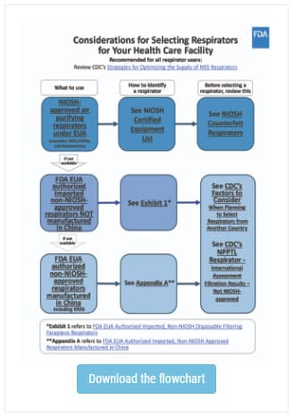 - How to identify a respirator to use: Review the FDA EUA for Respirators, including Appendix A: Authorized Imported, Non-NIOSH Approved Respirators Manufactured in China to identify respirators authorized by FDA for use by health care providers.