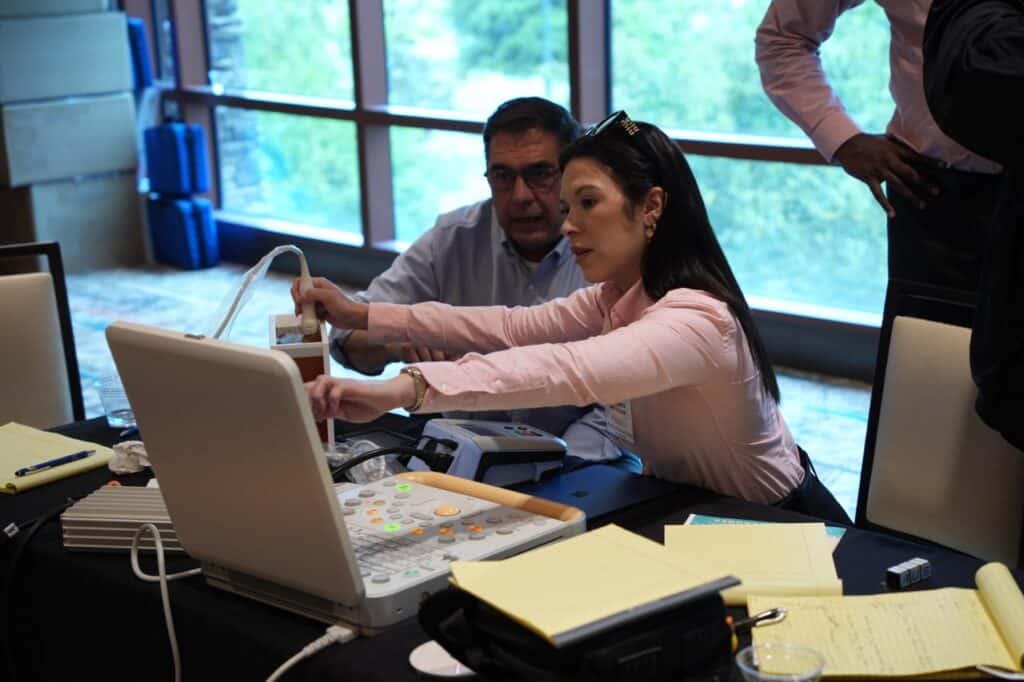 The Portable Ultrasound workshop, which ran from 8 a.m. to 4 p.m., was presented by James Rickner, Director of Service and Training, Advanced Ultrasound Systems. Participants received 7 CEUs for completing the full-day course, which covered preventive maintenance techniques, image quality assessments using a tissue-mimicking phantom, and electrical safety testing with an analyzer.