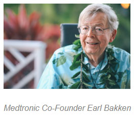 Medtronic plc announced that its co-founder, Earl E. Bakken, passed away peacefully on October 21, 2018 at his home on Kiholo Bay on the Big Island of Hawaii. He was 94 years old.