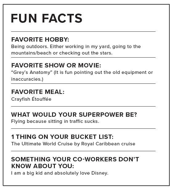 A: When I am not actually fixing equipment, I enjoy working with the other departments in the hospital to help streamline the processes to get equipment installed and/or repaired.