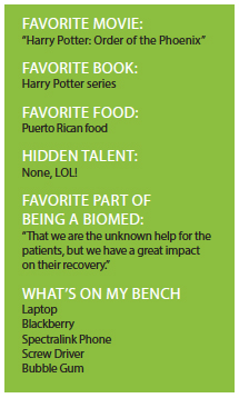 “I attended biomed school back in Puerto Rico and all my classes were in Spanish, so when I moved back to the states, it became my biggest challenge. I have to say that I have met a lot of great people in this field that have helped me through my career,” he says. “To all of you ‘Thank You,’ for your patience and for taking the time to help me grow as a professional.”
