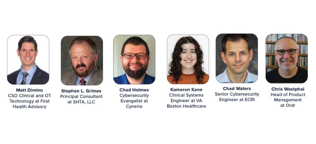 TechNation reached out to experts in the field to shed more light on cybersecurity. Participating in the roundtable are First Health Advisory’s CSO Clinical and OT Technology Matt Dimino, CISM, CRISC, HCISPP; Strategic Healthcare Technology Associates LLC Principal Consultant Stephen L. Grimes, FACCE, FHIMSS, FAIMBE, AAMIF; Cynerio Cybersecurity Evangelist Chad Holmes; VA Boston Healthcare System Clinical Systems Engineer Kameron Kane; ECRI Senior Cybersecurity Engineer Chad Waters and Ordr Head of Product Management Chris Westphal.