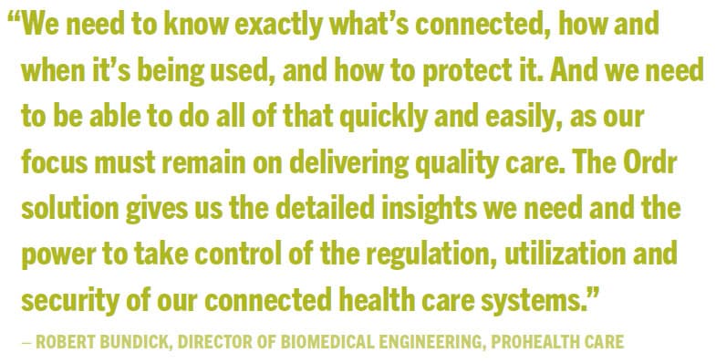 “Today’s health care networks consist of IoT, IoMT and operational technology devices, all of which may reside under different operational owners, creating a wide attack surface if not properly managed,” explains Greg Murphy, CEO of Ordr. “You need one common platform that can deliver visibility and security for all these devices, not just medical devices.”