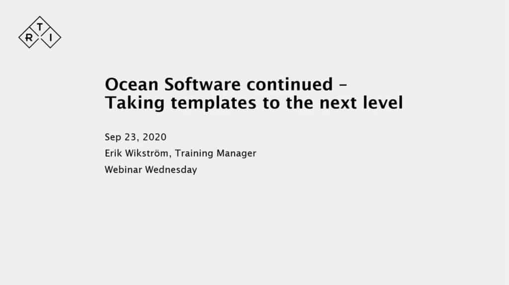 The recent Webinar Wednesday presentation “Ocean Software Continued: Taking Templates to the Next Level” presented by Erik Wikström, Manager Training Sales at RTI Group AB, was the latest to be eligible for 1 credit from the ACI.