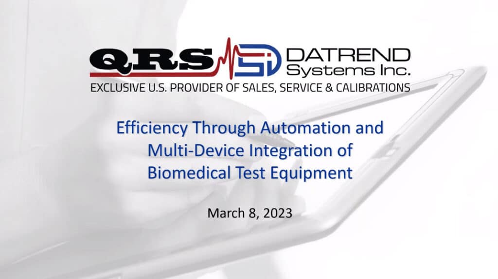 The recent Webinar Wednesday session “Efficiency Through Automation and Multi-Device Integration of Biomedical Test Equipment” was sponsored by QRS Solutions and Datrend Systems. The webinar was eligible for 1 credit from the ACI. The on-demand version is also eligible for 1 credit from the ACI. It can be viewed at WebinarWednesday.live.