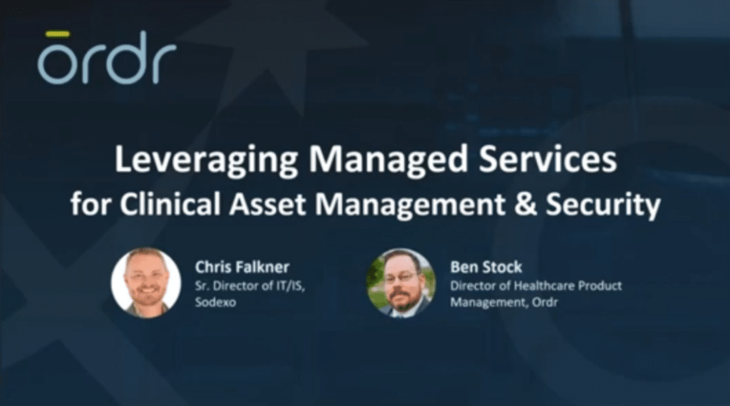 Ordr Director of Healthcare Product Management Ben Stock and Sodexo Senior Director of IT/IS Chris Falkner shared strategies for clinical asset management and security. They shared best practices on how to start a HTM cybersecurity program, and when to complement existing resources with managed services to accelerate the program.